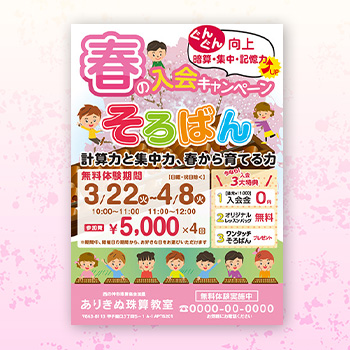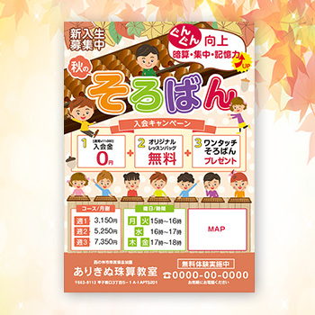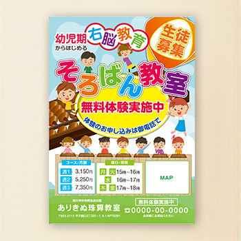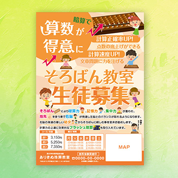 標準的な内容が盛り込めるそろばん教室の生徒募集チラシ