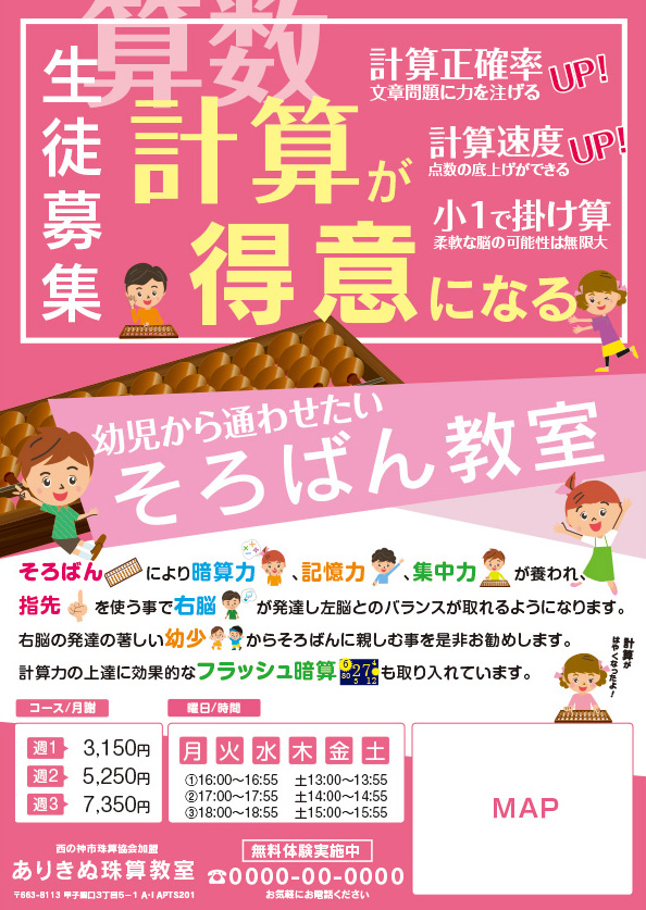 そろばん教室チラシ テンプレート番号:tem0008-03 ◆基本テンプレート お見積り依頼する場合は下記フォームにご入力ください。 後ほど、お見積りとデザインのご希望・掲載内容のお伺いを当店よりメール送信させていただきます。 当店のご利用について はじめての利用2回以上利用 必要なお見積り チラシ無し100部200部300部400部500部600部700部800部900部1,000部1,100部1,200部1,300部1,400部1,500部1,600部1,700部1,800部1,900部2,000部2,500部3,000部3,500部4,000部4,500部5,000部 納期 —以下から選択してください—通常短納期(追加料金) 印刷する面 —以下から選択してください—片面両面 デザインオプション 写真の美肌加工【無料】簡易地図作成【2000円】 印刷部数必須 10部20部30部40部50部60部70部80部90部100部200部300部400部500部600部700部800部900部1,000部1,100部1,200部1,300部1,400部1,500部1,600部1,700部1,800部1,900部2,000部2,500部3,000部3,500部4,000部4,500部5,000部 用紙の手触り必須 マット(しっとり)コート(光沢あり) 用紙の厚み必須 通常の厚み120%アップを希望【追加料金】 一般的には通常の厚みで問題ありませんが、しっかりした印象を与えたい場合は、厚みのアップをお勧めしています 担当者お名前必須 会社名 メールアドレス必須 電話番号必須 住所 郵便番号※半角入力で住所を自動入力 都道府県 市町村 番地・建物名など お問合せがあればご記入ください your message here ... 必ずチェックを入れてから送信してください このフィールドは空のままにしてください。 Δ テンプレート番号:tem0008-03
